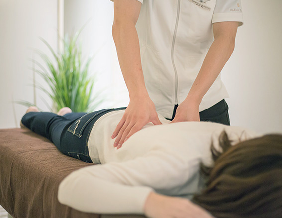 MAKANA整体サロングループでは、背中の痛みに対して根本原因からアプローチして症状の改善をめざします。背中の痛みへの主な施術では、背骨のバランスを改善して筋肉への負担を軽減することからスタートします。猫背や巻き肩などのクセを取り除きながら、こわばっていた筋肉を柔軟にしていきます。身体のより深い場所から矯正として働きかけていきます。